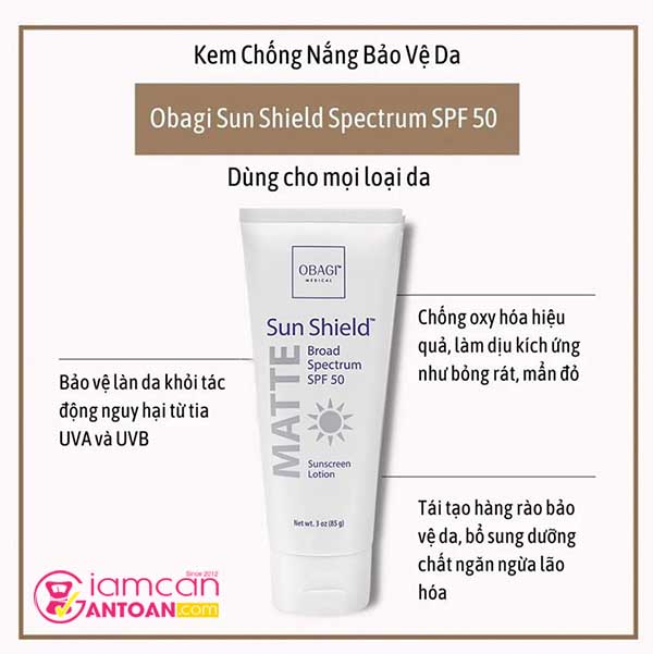 Công dụng chính của Kem Chống Nắng Obagi Sun Shield Matte Broad Spectrum Premium SPF 50 85g